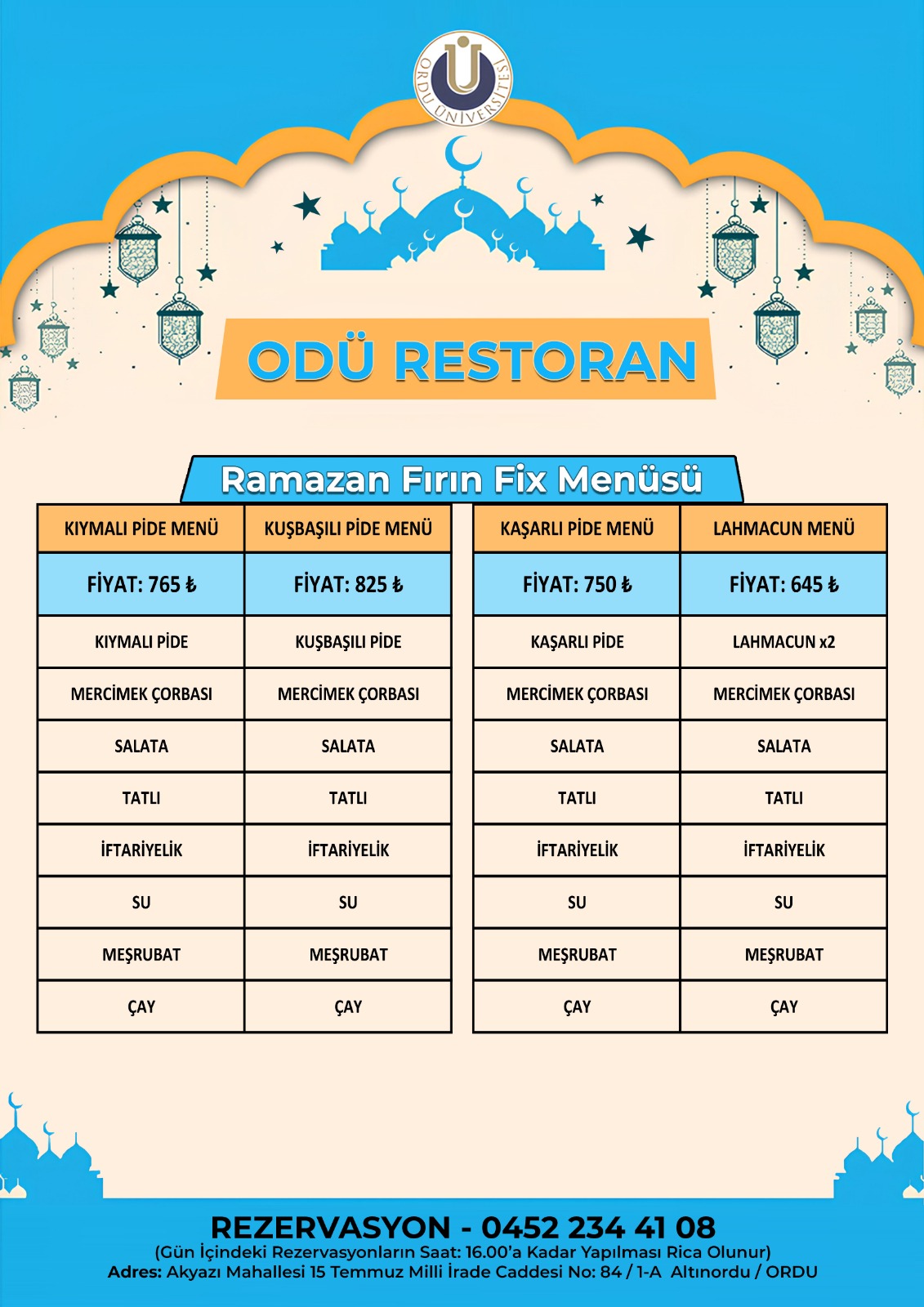 RAMAZAN AYI FIRIN BÖLÜMÜ FİX MENÜ